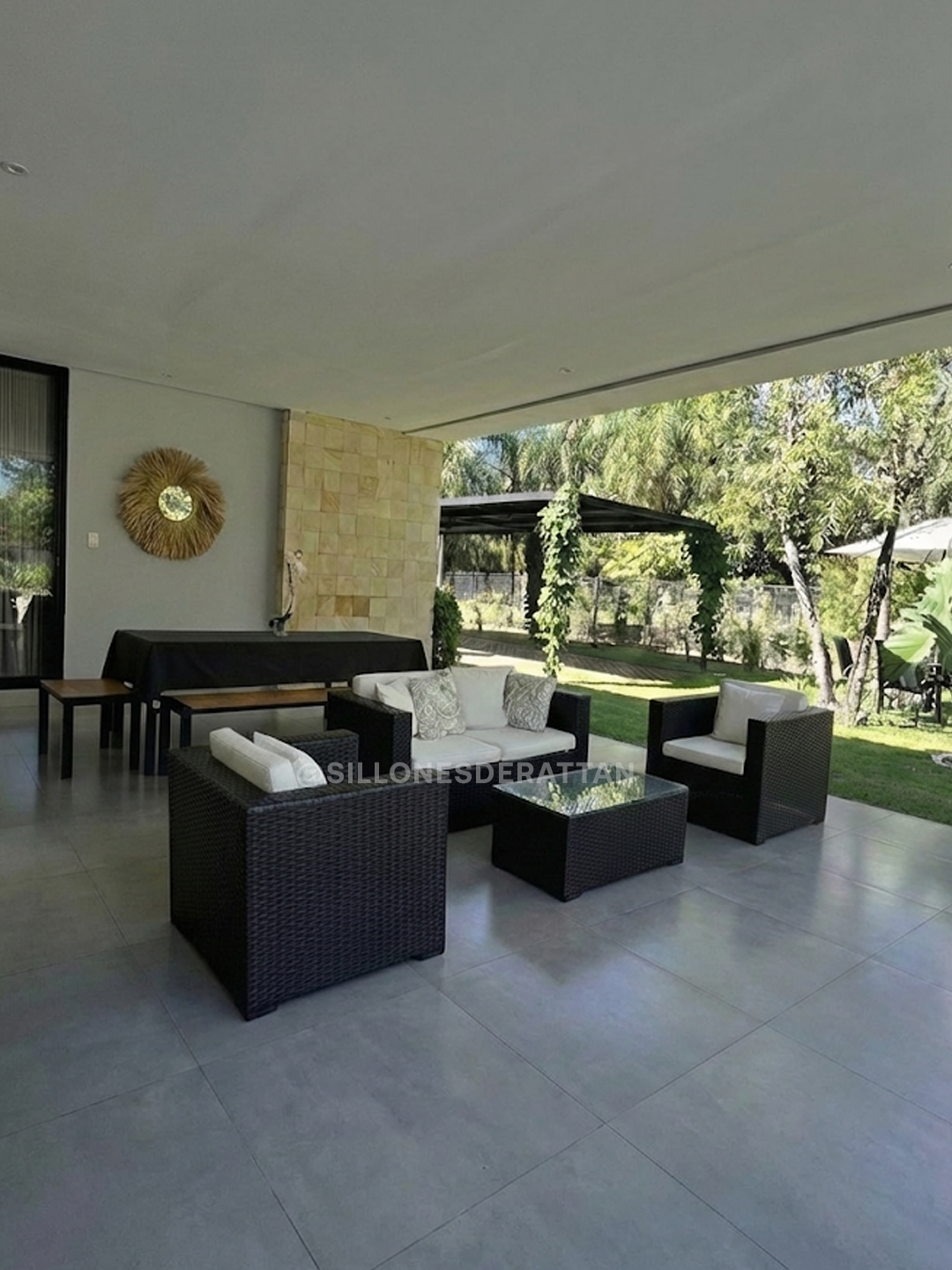 Incluye 2 sillones individuales, 1 sillón doble + mesa baja, asientos, respaldos y almohadones.